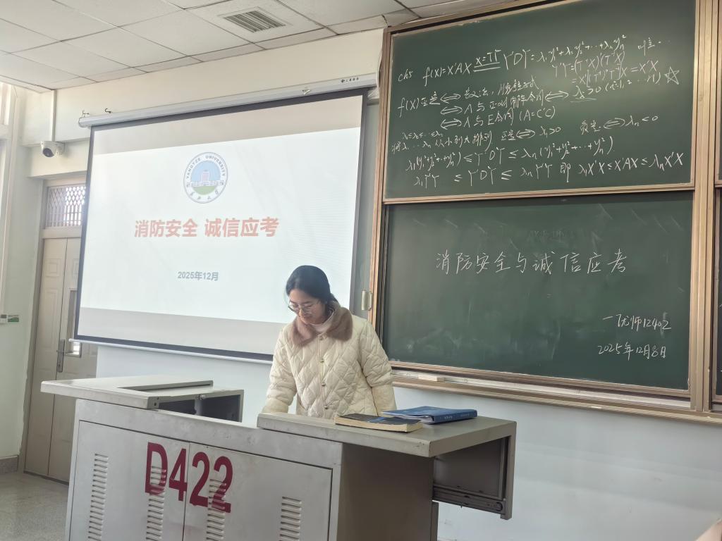 (通讯员 罗舒文)为深入贯彻落实学校2025年冬季消防安全教育及考试诚信教育工作要求,我院于12月组织各班举办了消防安全与诚信应考教育主题班会。此次班会由各班班长负责组织召开,全体学生均积极参与。班会的目的在于通过集中性教育,增强学生的消防安全意识,强化其诚信考试的观念,切实维护校园安全与考试公正。