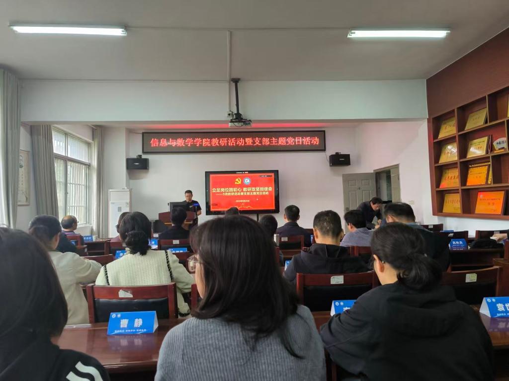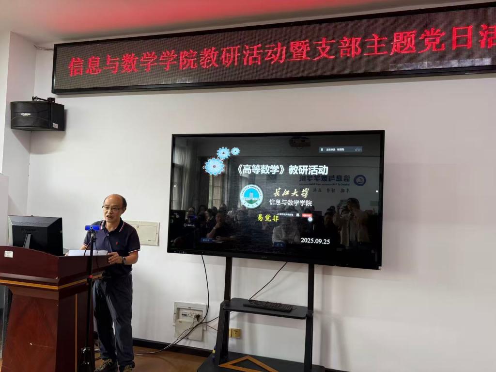 (通讯员 姜曼)9月25日下午,信息与数学学院在8-406会议室将9月教研活动与支部主题党日活动深度融合,以“教学提质”与“党建赋能”双轮驱动,凝聚学院发展合力。会议由副院长李向军主持,全体教职工参加。武汉校区教职工在线上同步进行。