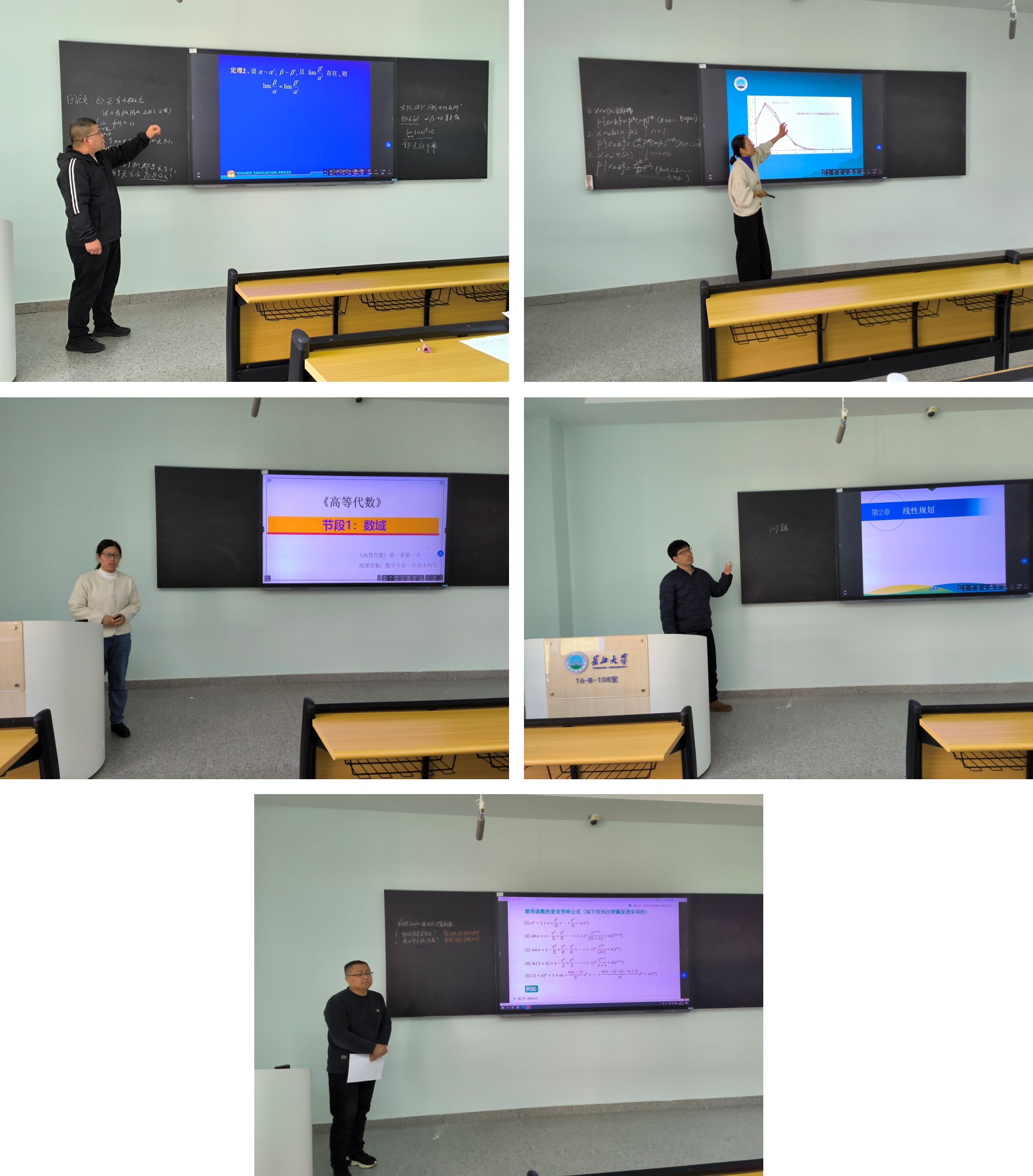 朱宽云、贾静兰、汪春花、黄中、卞新想5名青年教师参与本次初赛比拼。参赛教师依次进行课程展示,准备充分、讲解清晰,课堂设计合理、语言简洁流畅,充分展现了学院青年教师良好的教学能力和积极向上的精神风貌。